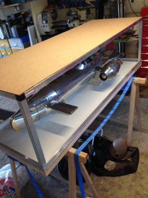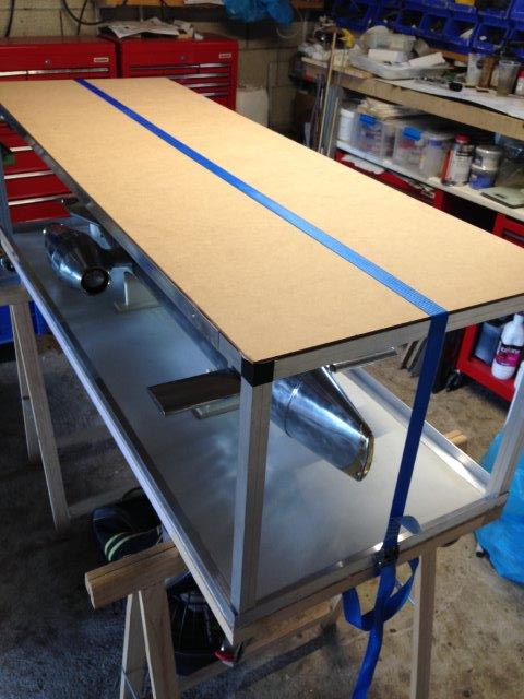 la partie superieure posée (plateau alu , plaque d'isorel avec 4 petits pieds verticaux)