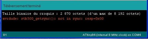 c'est encore écrit sur le site d'AlainMa question : comment être sûr que l'arduino est bien configuré comme programmeur et comment effacer le contenu de l'attiny 85 (formater ?)