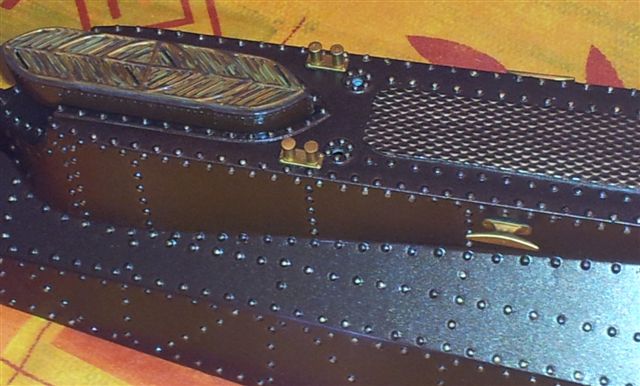J'ai réfléchi un moment ou est-ce que j'allais bien positionner ces satanées Ancres !! pour finalement utiliser les prises d'eau des ballast...bricoler un peu avec des petits anneaux en laiton ...pour faire comme si la chaine sortait de la quoi...c'est la seule et unique idée que j'ai eu !...