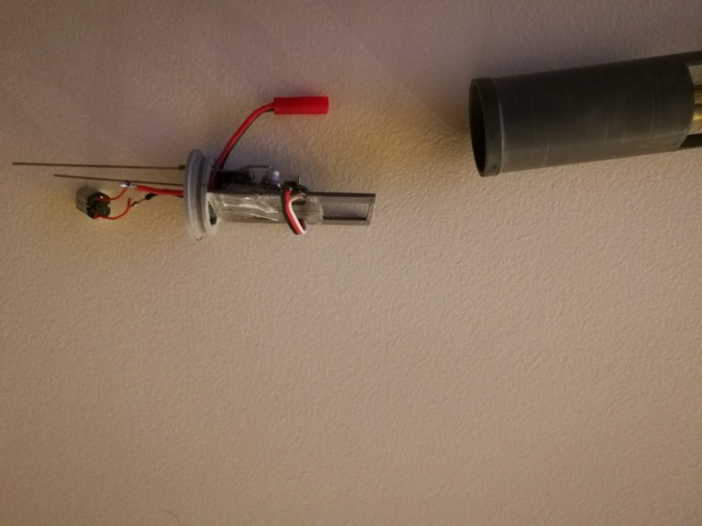 c'est simple , tu as un baxter gonflé , avec une vanne solénoïde fermée , donc tu flottes ( le baxter est en eau ) , tu ouvres la vanne qui libère l'air dans la partie étanche , donc le baxter se dégonfle et tu coules ....simple avec une petite pompe à air .( ensemble peut provenir d'un tensiometre ).