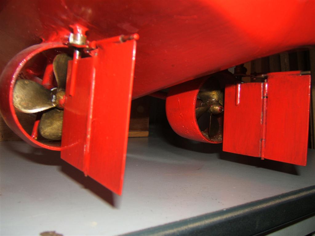 pour augmenter la giration de ton soum pourquoi n'y installes-tu pas un gouvernail de type Becker ; tu ne mentirais pas avec la réalité vu que c'est un engin fictif dans ton cas :Up: . C'est très facile à fabriquer et tu peux le faire court donc très discret . Celui de la photo est de ma fabrication et les 2 éléments , c'est toi qui en décide les dimentions : le 1er élément long et le 2èm court ou bien l'inverse . C'est la petite patte en laiton clair à raz de la coque qui décide de l'angle du 2èm élément ; en jouant sur son alignement gauche ou droite tu influences l'angle de giration .