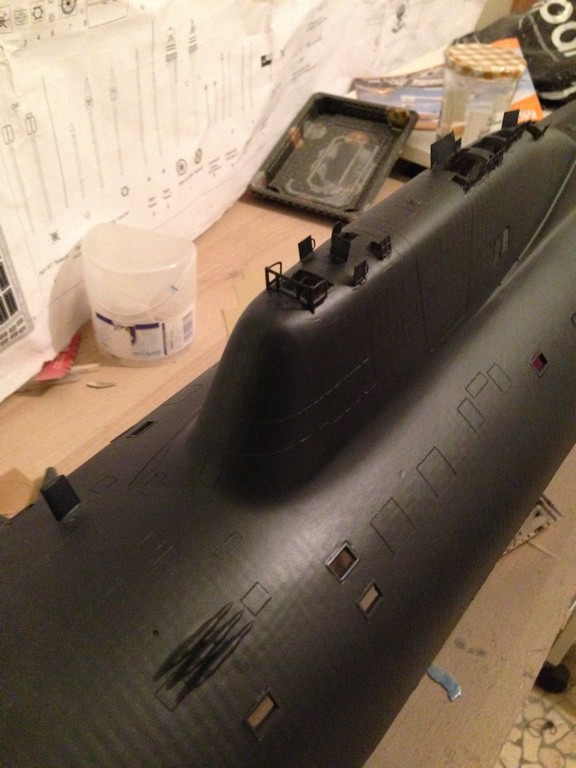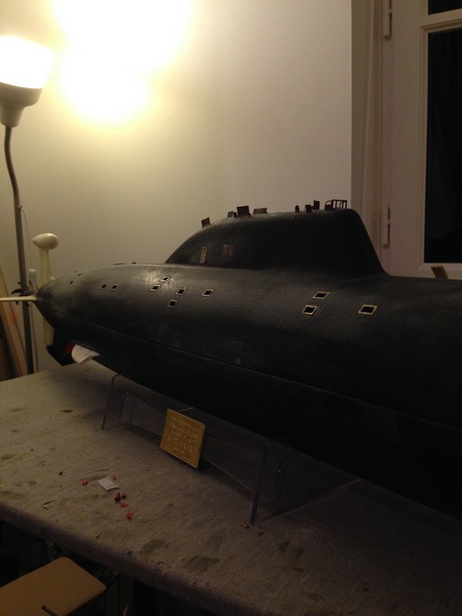 bonjour à tous. Après un peu plus de deux années de boulot, ça y est j'ai presque terminé mon akula coque scaleships. Voici une ou deux photos, j'en mettrai d'autres ce soir;