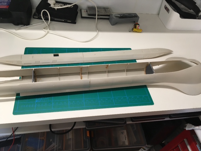 Assemblage de la coque...4 parties.. 2 moities de coque avant et 2 moities arriere..