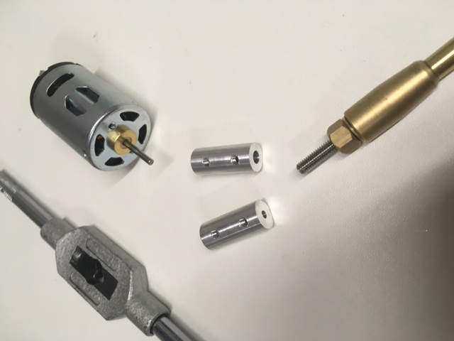 Apres...suppression des cardans et confection a la place des adaptateurs..moteur/arbre..2,3mm/4mm..tournage..perçage..taraudage...