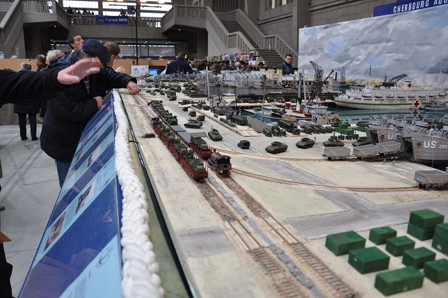 Tout d'abord le port de Cherbourg, une maquette de 8x8 m où les trains circulent et les bateaux naviguent qui a été réalisée par un club venu de Belgique