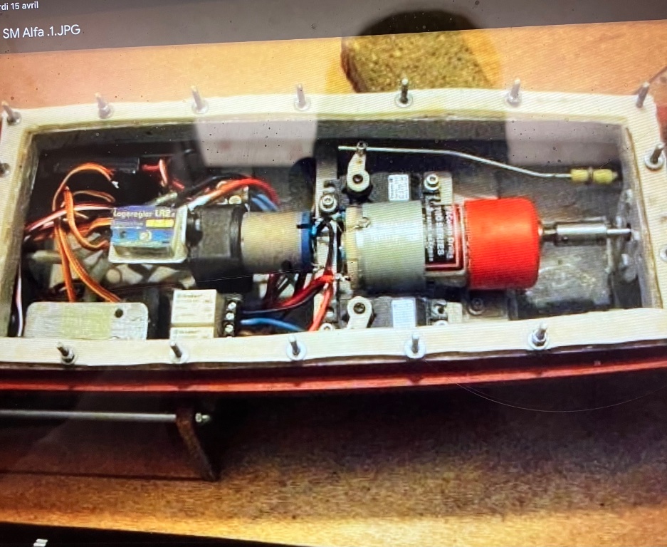 Par la suite , j'en ai monté un en 12v , ce qui faisait aller le bateau un peu moins vite, mais toujours trop vite plein gaz.