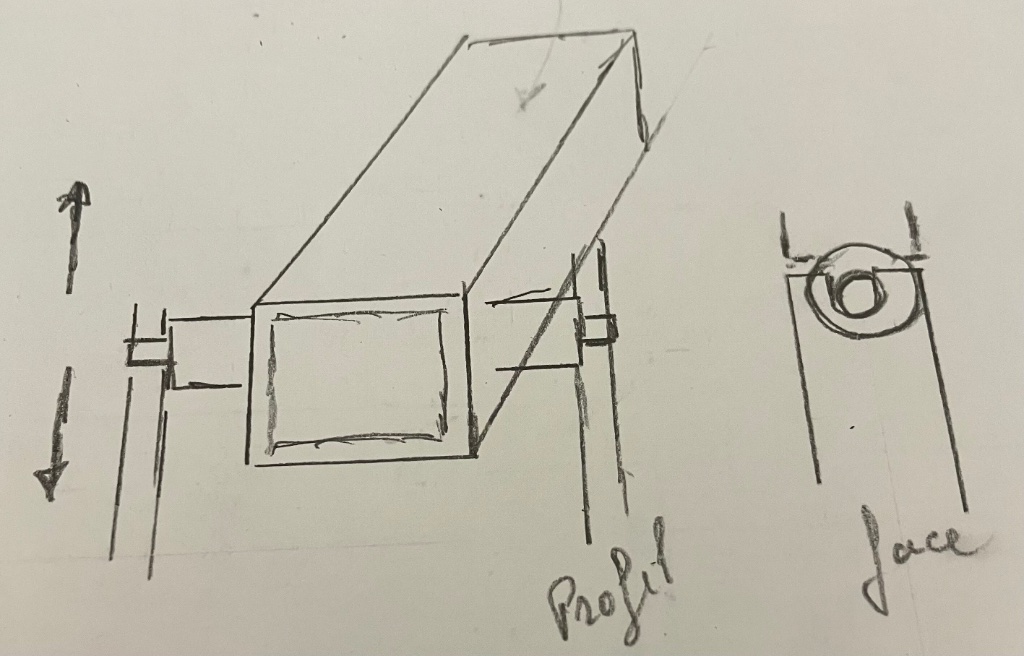 Pour la couleur? Pas important !!! Pour le reste petit croquis vite fait main levée, faire pivoter verticalement tube carré PVC, existait d’origine,mais supprimé par précédent propriot