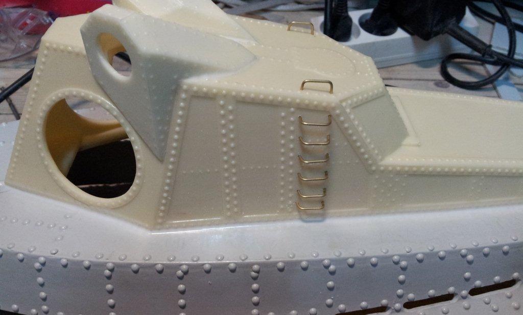 ensuite 2nde réflexion pour la fixation de la timonerie SUR la coque supérieure...