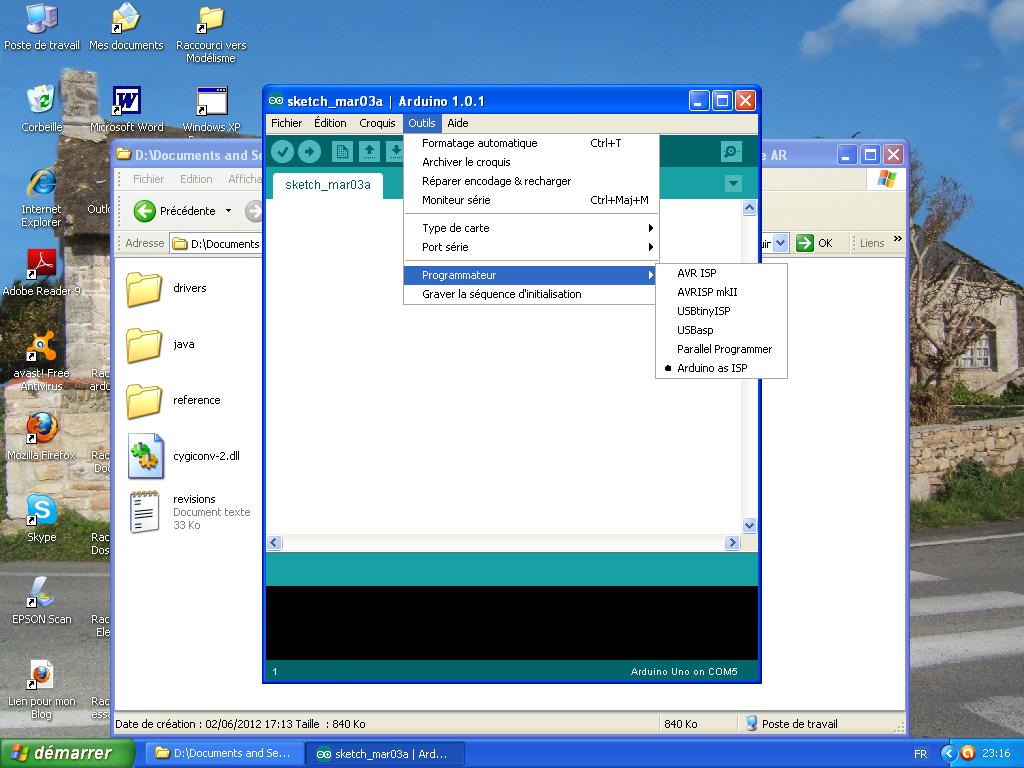 * Allez à nouveau dans ( Outils/Programmateur ) cliquez sur ( Arduino as ISP) pour signaler à l'IDE que l'UNO est utilisé comme programmateur.