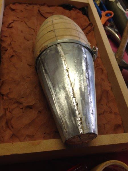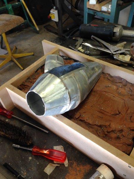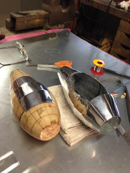 conception des turbines sur le master bois...patron papier,scotch, decoupe des morceaux de zinc, soudure, ponçage, pollissage.....