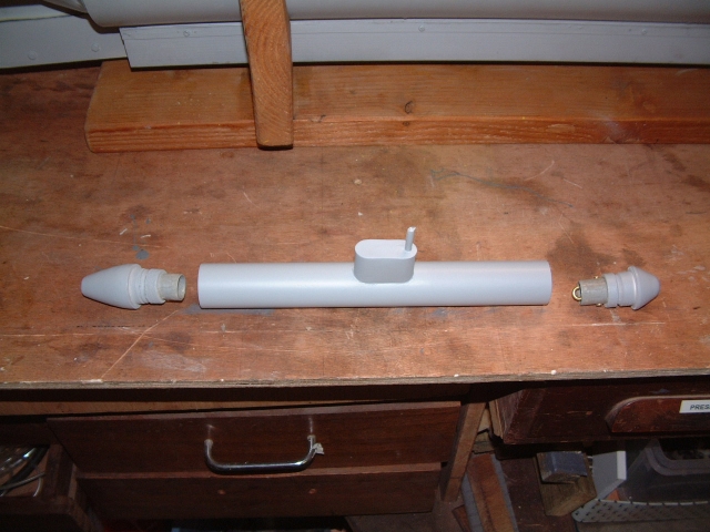 - Insertion d'un tube au centre de la coque qui recevra la propulsion en zone "humide"