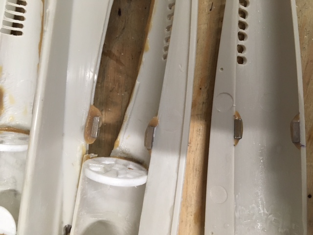 Petit up.. fermeture des turbines.. j'étais partagé dans le fait de les rendre demontables ou de coller la partie inferieure apres avoir coller les arbres d'helice et vissé les hélices..puis mon âme de mainteneur reprends le dessus et me convainc de malgré tout les rendre demontables malgré la "petitesse" du bordel.. pour par exemple.. on sait jamais revisser les hélices. Alors mise en place de tout petits aimants neodimes . Et ça ferme parfaitement
