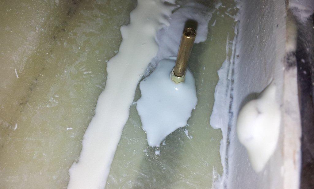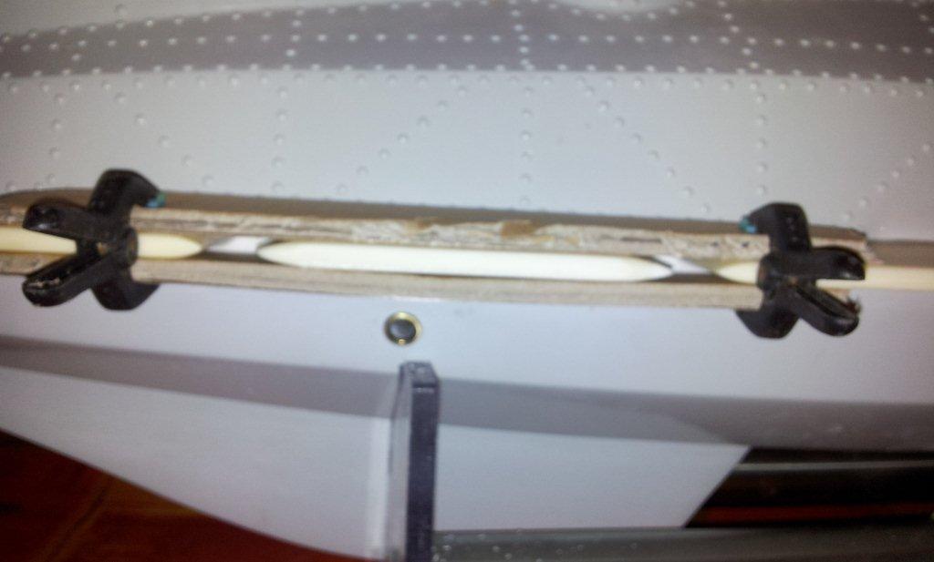 j'ai commencé par mettre en place la pièce (confectionné auparavant ) qui sert de jonction entre l'axe des barres et la tringlerie de servo...