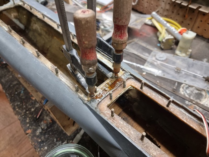 Reprise du cadre de la trappe principale, collage à la bi composant, ça devrait tenir bon.............. :Up: