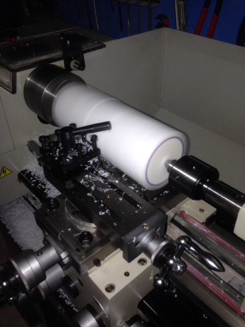 debit d'un morceau de teflon pour confection des têtes de piston