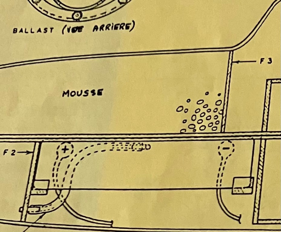 Ci joint photos,cest un ancien système,avec tappes,donc pas beaucoup de latitude pour ajuster la position du ballast ? Peut être aussi ? Le plomb de lestage,ets peut être mal placė ? Sur le plan RC Marine N° 35 il ėtait prēvue de la mousse, dans le nez et un bloc en arrière du kiosque ? Je nai jamais essayė, d’en ajouter,suite a la lecture de plusieurs sites internet.