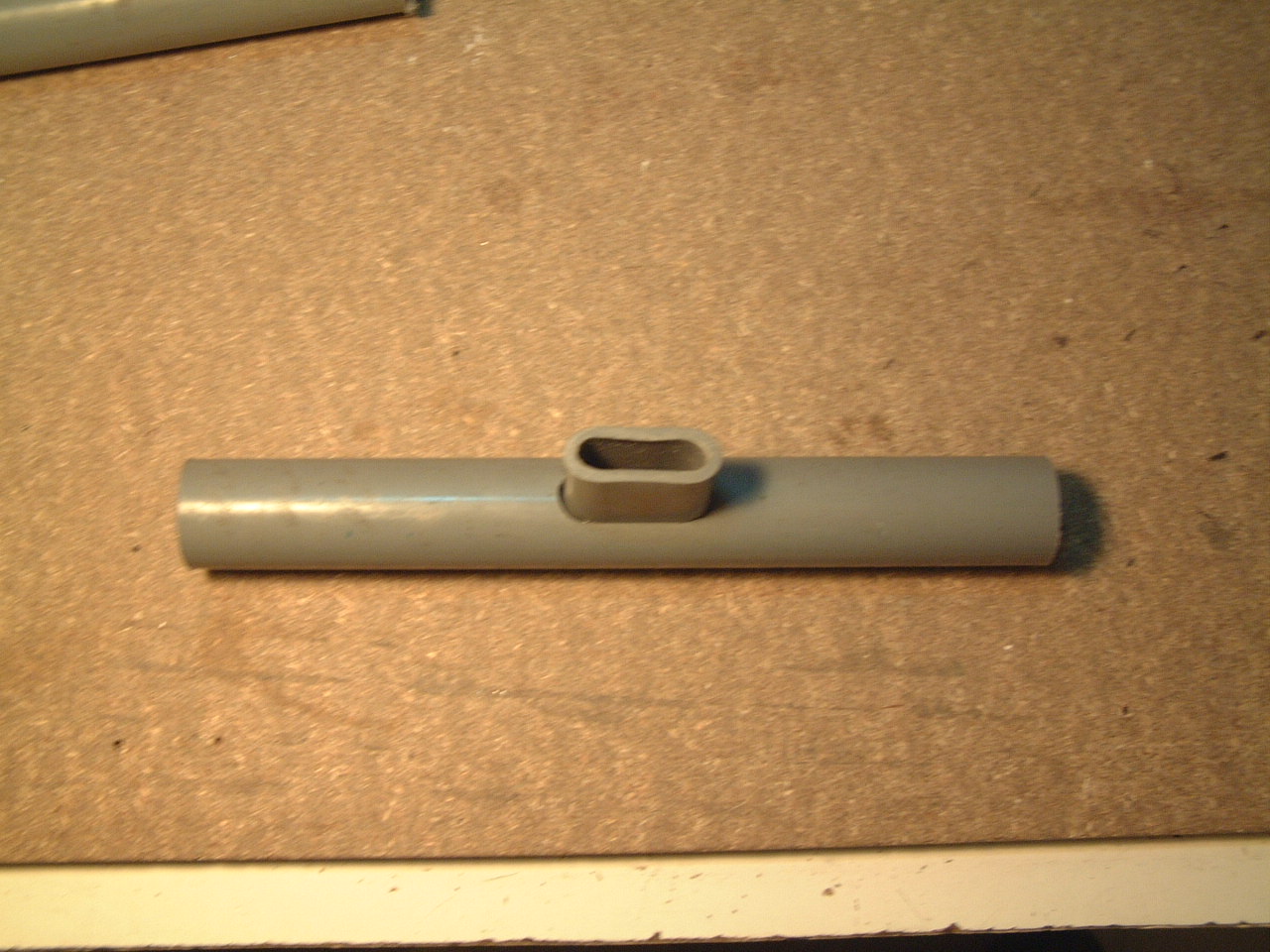 Un rondin de bois (chute de tringle à rideau) un morceau de tuyau PVC diametre 32, quelques morceaux de laiton et bien sûr un elastique...