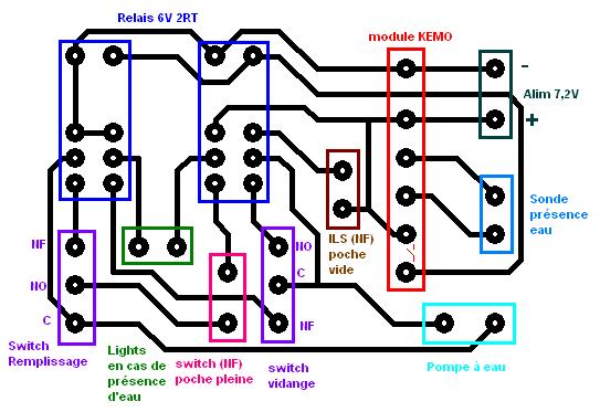 je voulais imaginer une platine pouvant gerer à la fois : les switch de commande d'une pompe de ballast (type baxter), mais aussi la presence d'eau, la poche pleine, la poche vide... bref...vous allez me dire ! "heee fils ! achete un BTS !!" :lol: :lol: