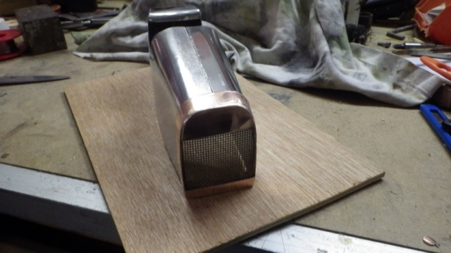 Je vais essayer de détailler la construction. Comme pour les autres, le matériel utilisé chutes de zinc, de cuivre et de laiton est à 90% de la récup... Seules la visserie et les roues ont été achetées chez La Reine Merline, elle sont destinées aux tables roulantes.