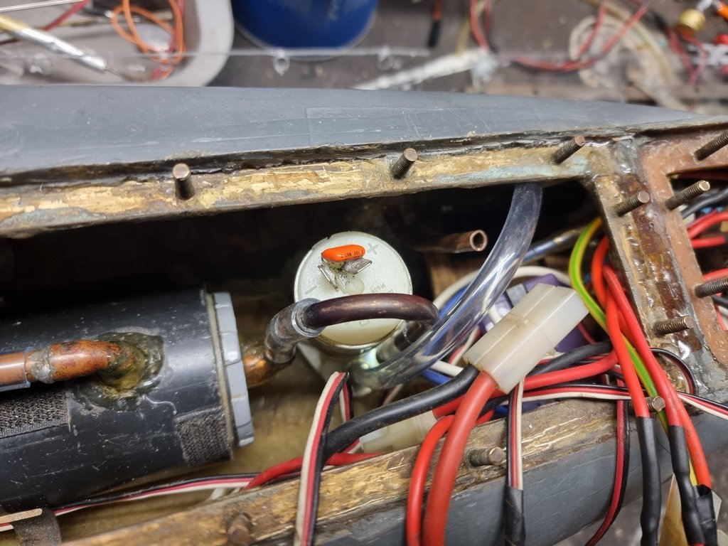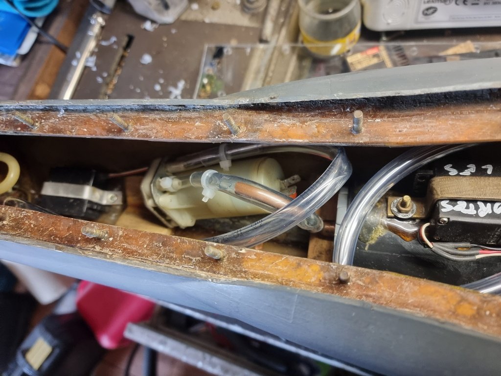 Aller c'est reparti, refabrication des trappes qui avaient bien vieillies, changement des durites pour les entrées et sorties d'eau, quelques réglages et ça sera tout bon. Recollage d'une entrée d'eau dans la coque aussi.........
