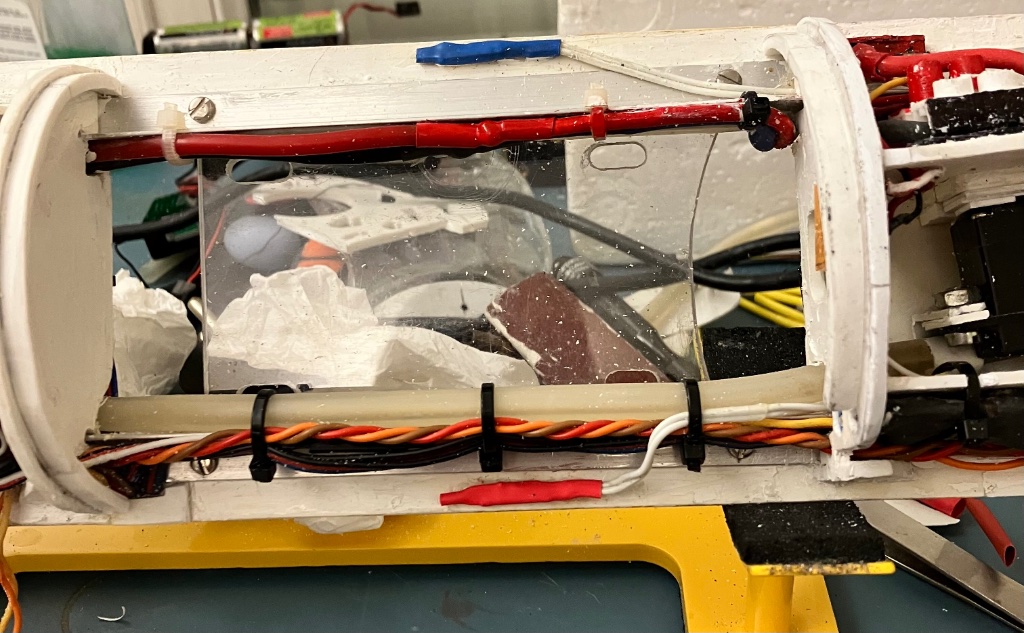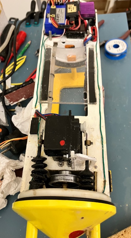 Ayant délaissé,pour quelques temps mon type Alfa,j’ai ressortit un soum ,acquis il y a quelques années dėjà ce petit jaune :Up: la base étant issue d’un «  Sea Wof «  Robbe ,bien connu de tous, il était prêt a naviguer, mis a part accus HS ( 2 Nimh 2200 Mah en // ) j’ai donc,afin d’occuper mes longues soirées d’hiver,de le ressortir et faire quelques améliorations a mon gout perso ( mëme si il était déjà très bien ) le ballast est un Baxter de 250 Ml situé partie centrale sur le dessus du rack technique remplissage par pompe et presse durite.Le dessous étant réservé aux accus.Le moteur ,d’origine avec réduçteur préçédent constructeur, et courroie ( joint torique )radio 7 voies Sanwa VG 600, Esc, false sef ,et Bec pour le 5 volts,la coque extèrieur est équipé de 2 tubes ( patins,avec éclairage et lest plomb )je ne sais pas encore si sera nouveau Nimh ou bien L.ion de récupes )pour l’instant quelques photos ci jointes,pour vous donner une idée.