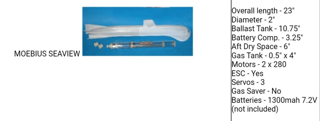 Dimensions et longueur de chaque compartiment du sous-moteur (cylindre étanche) de David Merriman pour le Moebius Seaview