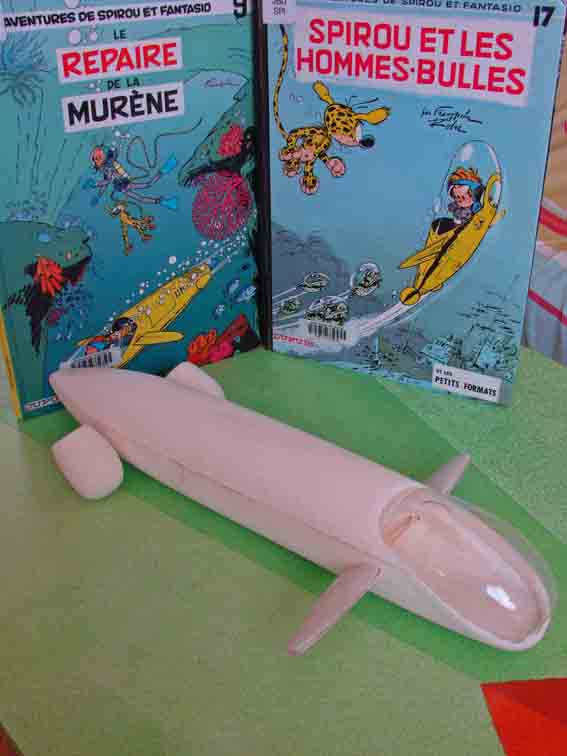 bonjour et merci pour les réponses que vous m'avez données pour le sous marin de Spirou. On va le faire en 90 cm à peu près et avec une hélice à l'arrière et non pas sur les cotés (c'est papa qui va être content coté budget ...)Le sous marin de Rackam est super!