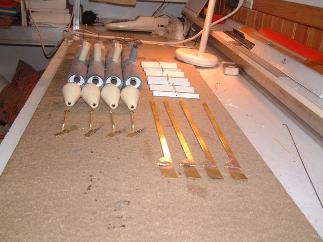 Le ponçage de la coque est fait, il reste la mise en peinture,le montage de l'ensemble, la confection des 4 élastiques, l'équilibrage et les essais sans compter les 4 bers... Père Noël... Attends moi !!!