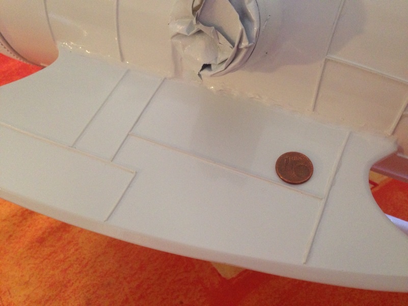 Ensuite ...suite a petit achat (lors du modelshow avignon lors de ma visite express le samedi matin) de petit profilé type "evergreen" j'ai refait les imitations ligne de soudure pardessus mes gravures...ça rend selon moi bcp mieux...