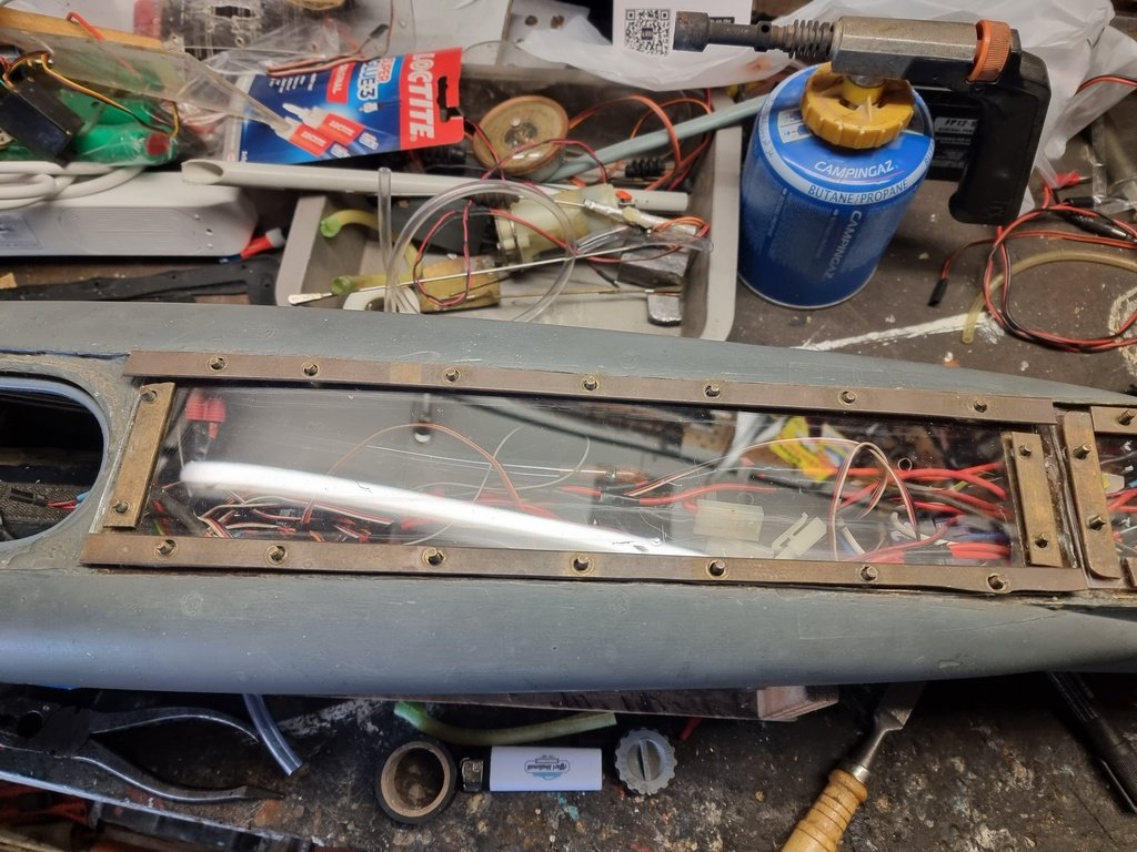 Aller c'est reparti, refabrication des trappes qui avaient bien vieillies, changement des durites pour les entrées et sorties d'eau, quelques réglages et ça sera tout bon. Recollage d'une entrée d'eau dans la coque aussi.........