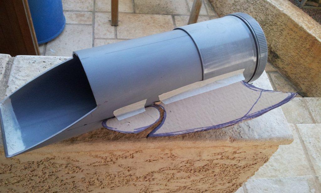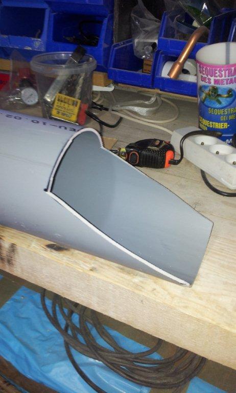 puis découpe d'un morceau pour faire l'avant du soum , colé ( a la colle PVC) puis poncé...poncé....poncé..!