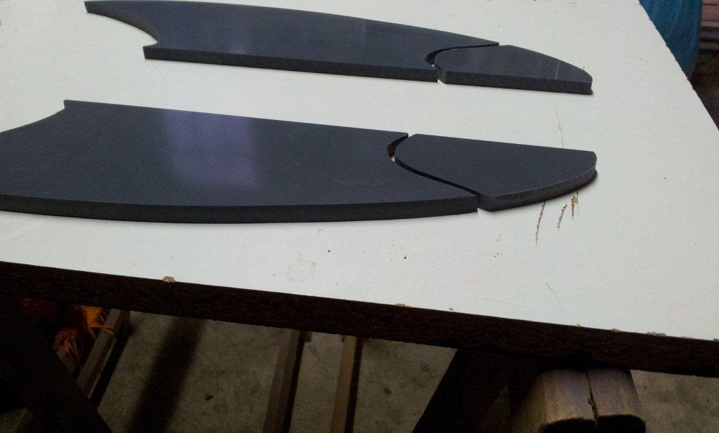 du coup traçage sur pvc découp, ponçage.... j'intègre les barres de plongées dans le profil d'aile...