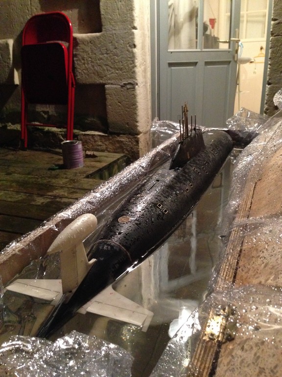 bonjour à tous. Après un peu plus de deux années de boulot, ça y est j'ai presque terminé mon akula coque scaleships. Voici une ou deux photos, j'en mettrai d'autres ce soir;