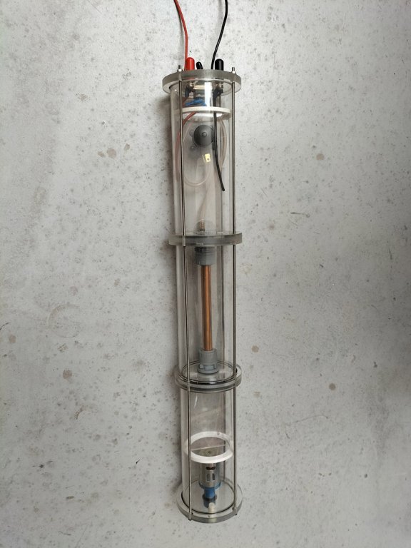 - système de plongée statique incluant un tube étanche en 3 parties dont le ballast central, pompe à ballast et motorisation montée sur système de passe-coque étanche + sorties alimentation étanches + interrupteur marche/arrêt externe.